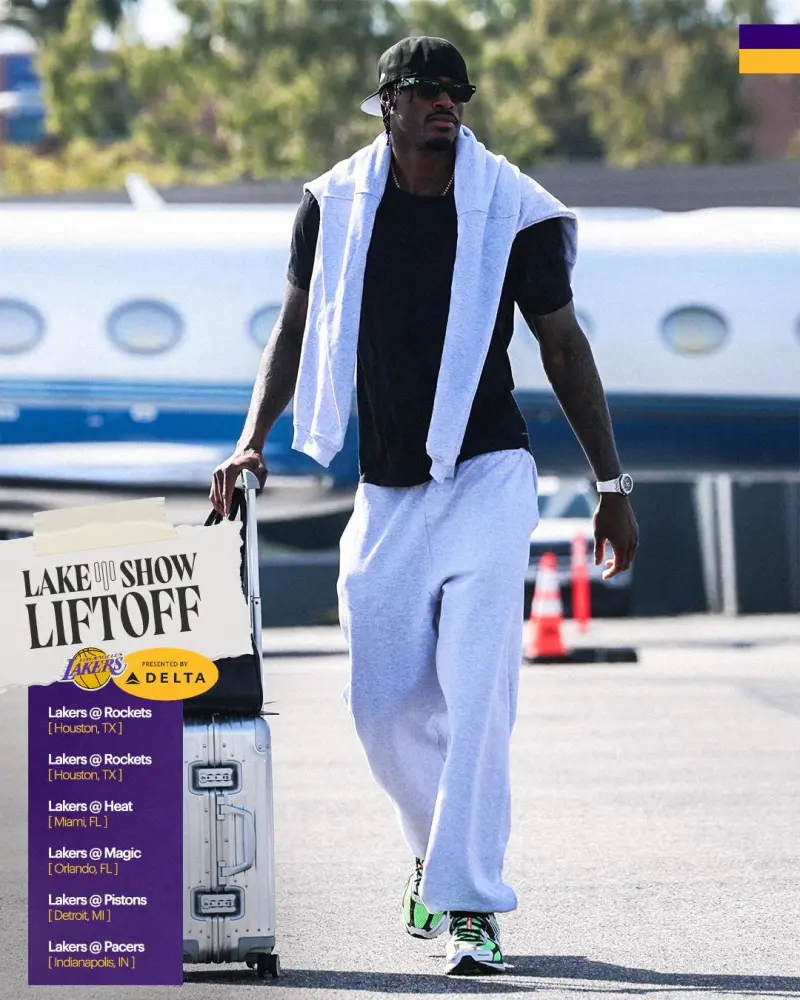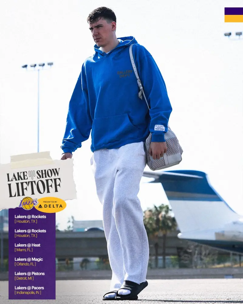 赛前,湖人社媒分享湖人众将奔赴休斯顿的登机照片组图,卢卡-东契奇等球员出镜。
